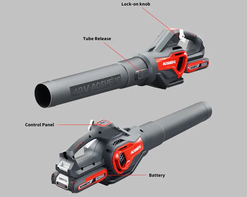 5. 保管環境と保管方法に注意してください。保管するときは、輸送中に傷や亀裂が生じる可能性があるため、チューブを他の硬い物と一緒に置かないように注意してください。また、元の形状と性能を維持するために、チューブを曲げたりねじったりしないでください。本体の接続: A40CF900HEB01 40V リチウム電池リーフブロワーでは、この接続は通常、リーフブロワーの前面、排気口近くに位置しており、使用中に簡単に外れないように非常に安定した設計になっています。