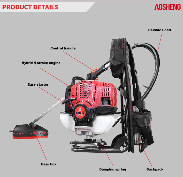 高性能4ストロークエンジン、 排気量は38CCです。開けた荒れ地でのプロフェッショナルな使用 チューブサイズ26mm*1.5mm、強度の高いフレキシブルシャフト。 切断幅は420mm、寿命は150時間以上 新しいデザインのガイドカバー。