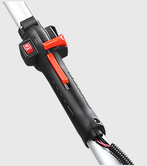 | 04大型化したプロテクター&ギアボックス460mmの切断幅が可能です。ナイロン線径は2.4mmですので作業効率が大幅にアップします。特に3Dロゴが入っているため、ギアボックスは通常のギアボックスよりも強力です。 |