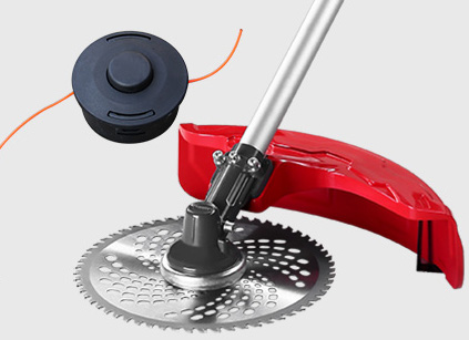 プロフェッショナルエンジン、強力なパワー。消費量が少なく、簡単に始められます。 360°回転 ポール部分はダンパーカバーを採用。 制御ハンドルを 180°回転させて吸収を減らすことができます。ゴムで覆われたハンドルにより快適に使用できます。 トリマーヘッドは460mmのカット幅を提供できます。合金ブレードの直径は10インチです。