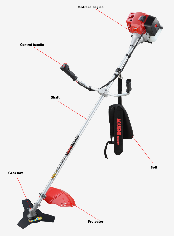 高性能4ストロークエンジン、 排気量は38CCです。開けた荒れ地でのプロフェッショナルな使用 チューブサイズ26mm*1.5mm、強度の高いフレキシブルシャフト。 切断幅は420mm、寿命は150時間以上 新しいデザインのガイドカバー。