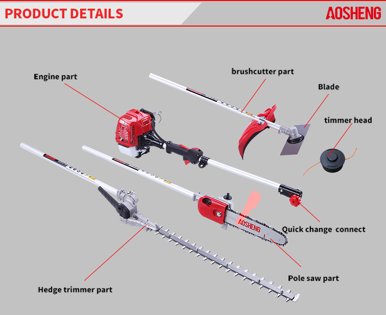 マルチ刈払機には、ヘッジトリマー、ポールソー、トリマーハンドブレードが含まれます。