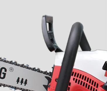 03ブレーキ保護装置ブレーキの反応が敏感になり、操作の安全性が向上します。フロントハンドルとバックハンドルが一体となったシンプルで堅牢な構造。装置に圧力をかけるとチェーンソーを停止できます。 | |