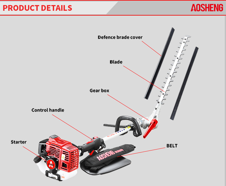 高性能4ストロークエンジン、 排気量は38CCです。開けた荒れ地でのプロフェッショナルな使用 チューブサイズ26mm*1.5mm、強度の高いフレキシブルシャフト。 切断幅は420mm、寿命は150時間以上 新しいデザインのガイドカバー。