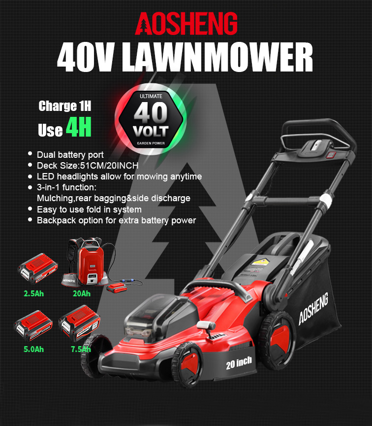 | 04バッテリーコンパートメント バッテリーパックはSamsungバッテリー18650-25Rを使用します 複数の保護機能を搭載 安定したパフォーマンスを、より安心に 適用可能なAOSHENG 40Vバッテリーパック デュアルバッテリーポートはバックアップバッテリーに切り替えて稼働時間を延長できます。 |